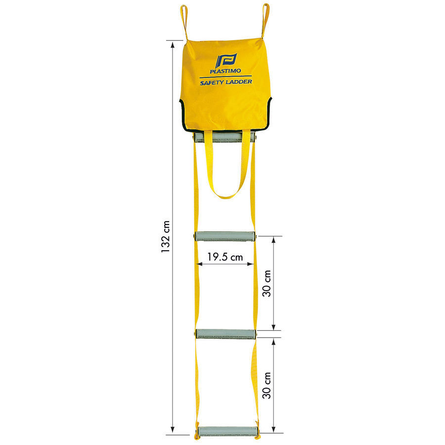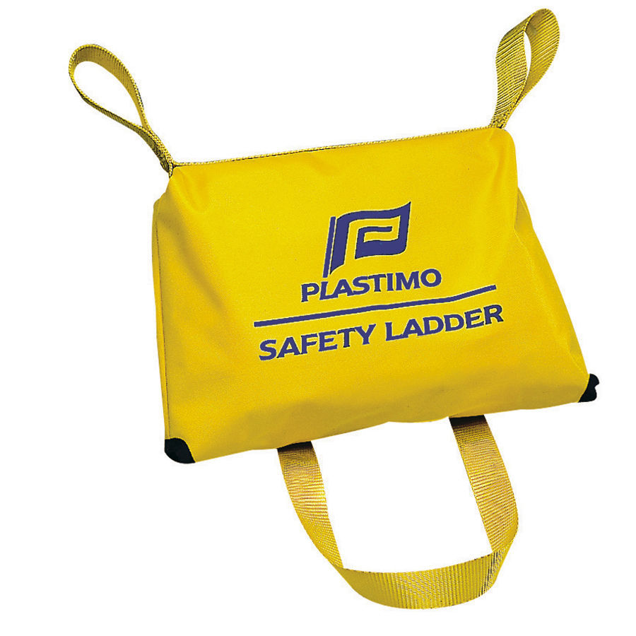 Sikkerhetsstige med fem trinn – livsviktig utstyr om du faller over bord. Å falle i sjøen fra en båt kan skje plutselig – og uten en god løsning for å komme seg ombord igjen, kan situasjonen raskt bli kritisk. Denne kompakte sikkerhetsstigen er utviklet nettopp for slike nødsituasjoner og gir deg en trygg og enkel vei tilbake i båten. Sikkerhetsstigen ligger sammenfoldet i en praktisk veske med to håndtak. Det ene håndtaket festes permanent i en puller eller annen fastmontering ombord, mens det andre håndtaket henger fritt ned mot vannflaten. Ved å dra i det løse håndtaket, folder stigen seg automatisk ut og er klar til bruk – selv for en person som ligger i vannet.