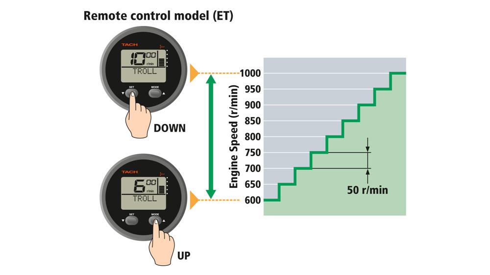 Et svært avslappende og pålitelig system, som er standard på 115hp. Du kan ganske enkelt stille inn og holde det lave turtallet (mellom 600 og 1000) i trinn på 50 o/min ved hjelp av en knapp på turtelleren – eller på multifunksjonsstyrekulten. Det avanserte systemet deaktiveres automatisk når gasspaken beveges.