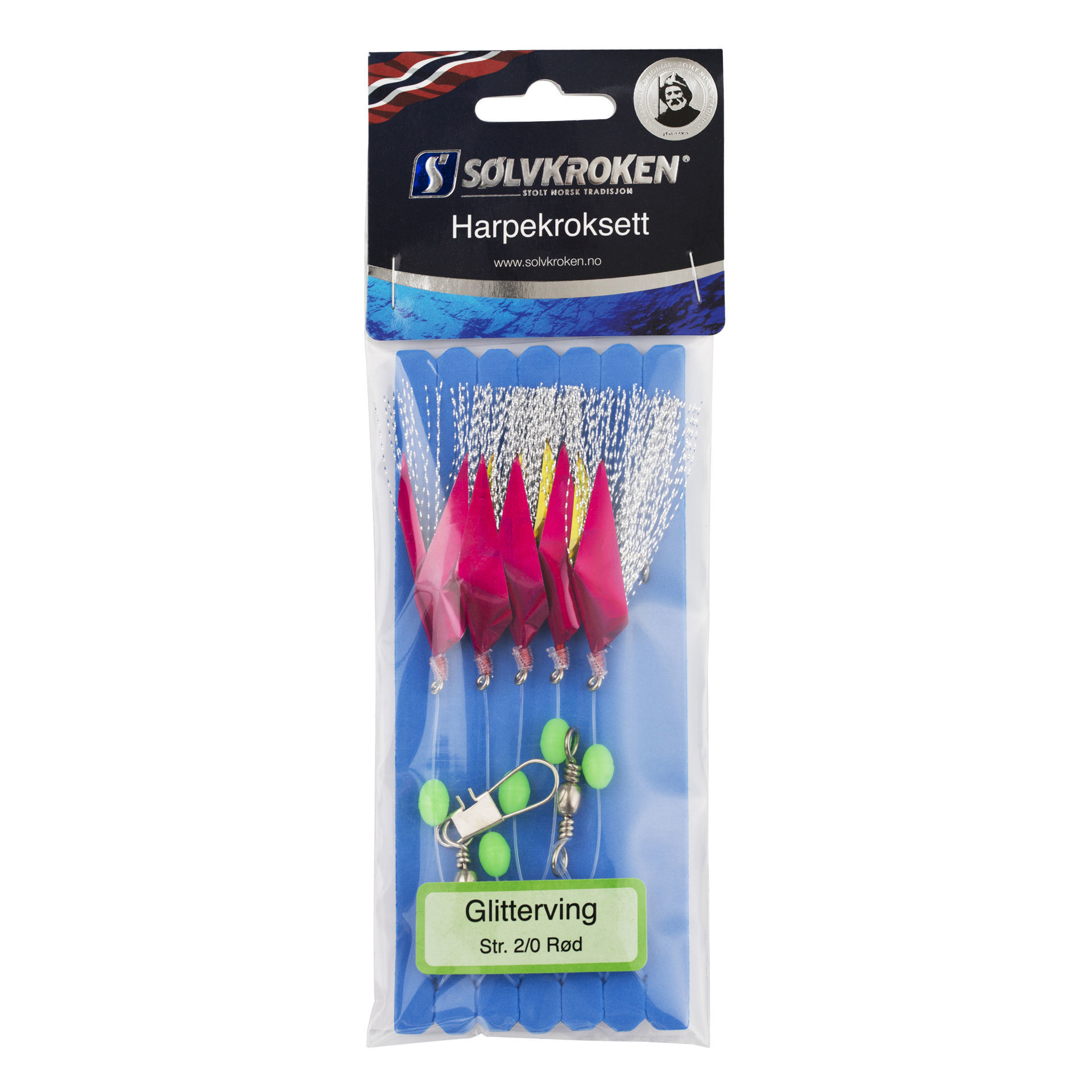 Kroksettet Glitterving kommer som spesialkroksett med tre opphengere, som er ypperlig til stangfiske fra båt. Kroksettet er 1,6 meter langt. Settet kommer komplett med svivler i begge endene. Plug and Play!