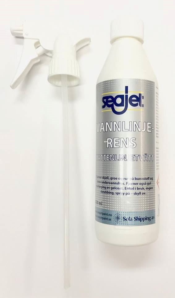 Skjell fjernes først med skrape. Seajet Vannlinjerens brukes ufortynnet på tørre overflater.
